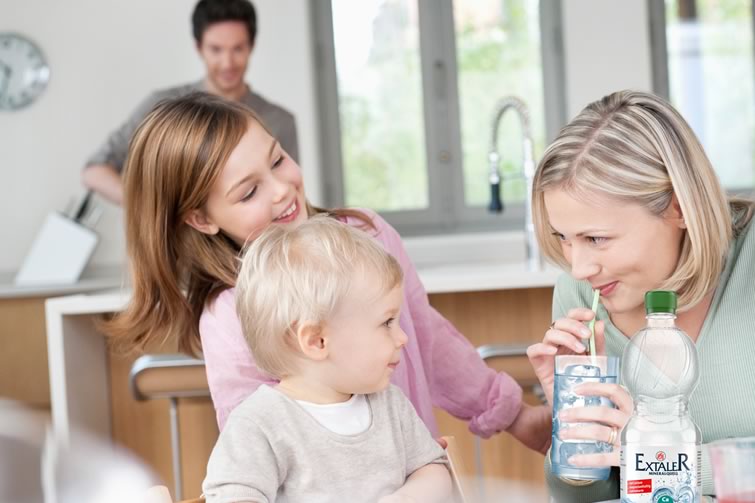 Damit wir auch in der Freizeit das Trinken nicht gedankenverloren vernachlässigen, helfen gewisse Rituale, den Wasserhaushalt auf dem gesunden Level zu halten, z. B. zu JEDER Mahlzeit Gläser für Mineralwasser mit eindecken und sich gegenseitig ans Trinken erinnern. So lernen vor allem schon Kinder frühzeitig, ausreichend zu trinken. In häufig aufgesuchten Räumen wie Wohnzimmer, Küche und Schlafzimmer sollte immer eine Flasche bereitstehen.